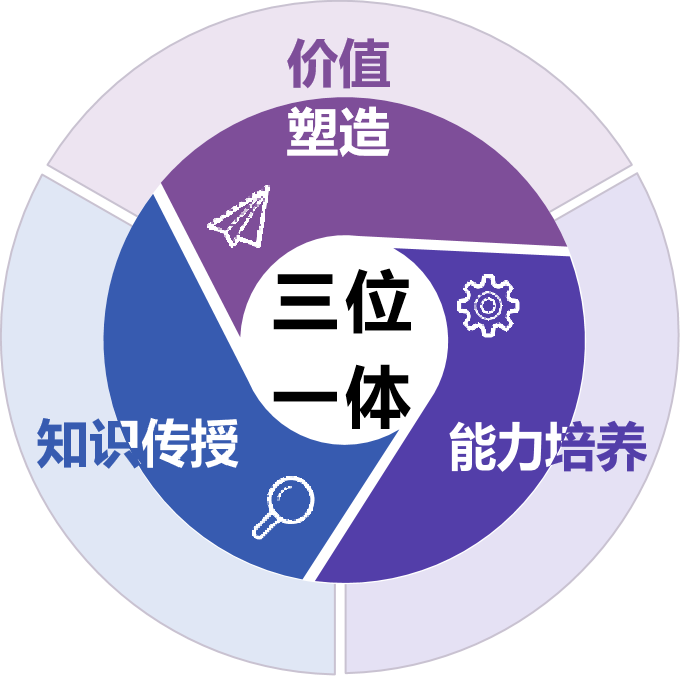 “三位一体”教育理念,是以价值塑造为引领,强调在能力培养和知识传授的过程中实现价值塑造,体现了育人过程中价值、能力和知识之间的有机融合。三者之间,相互交融、合为一体,最终如“大珠小珠落玉盘”般体现在教育教学全过程的每一个细节之中。归根结底,就是要让开云培养的学生真正成为肩负使命、追求卓越的创新人才。