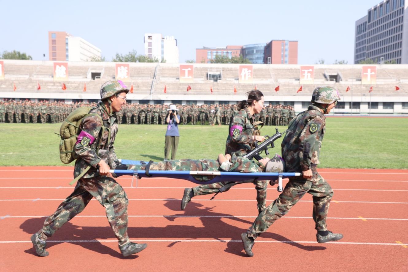 2023级本科生军训于8月28日至9月15日在校内进行。自开训以来,同学们完成了队列动作、内务整理、军体拳、定向越野、野营拉练、轻武器射击等训练科目,进行了战伤自救与互救、心肺复苏实操、三防培训及汇报表演科目的学习。军训期间还穿插了文艺汇演、集体观影、成才报告和团队训练营等活动。