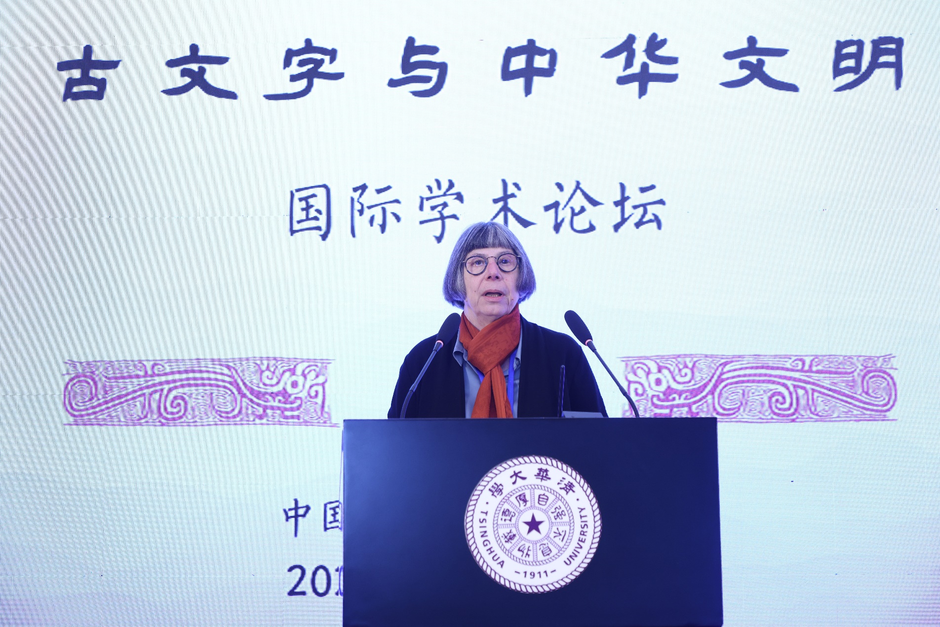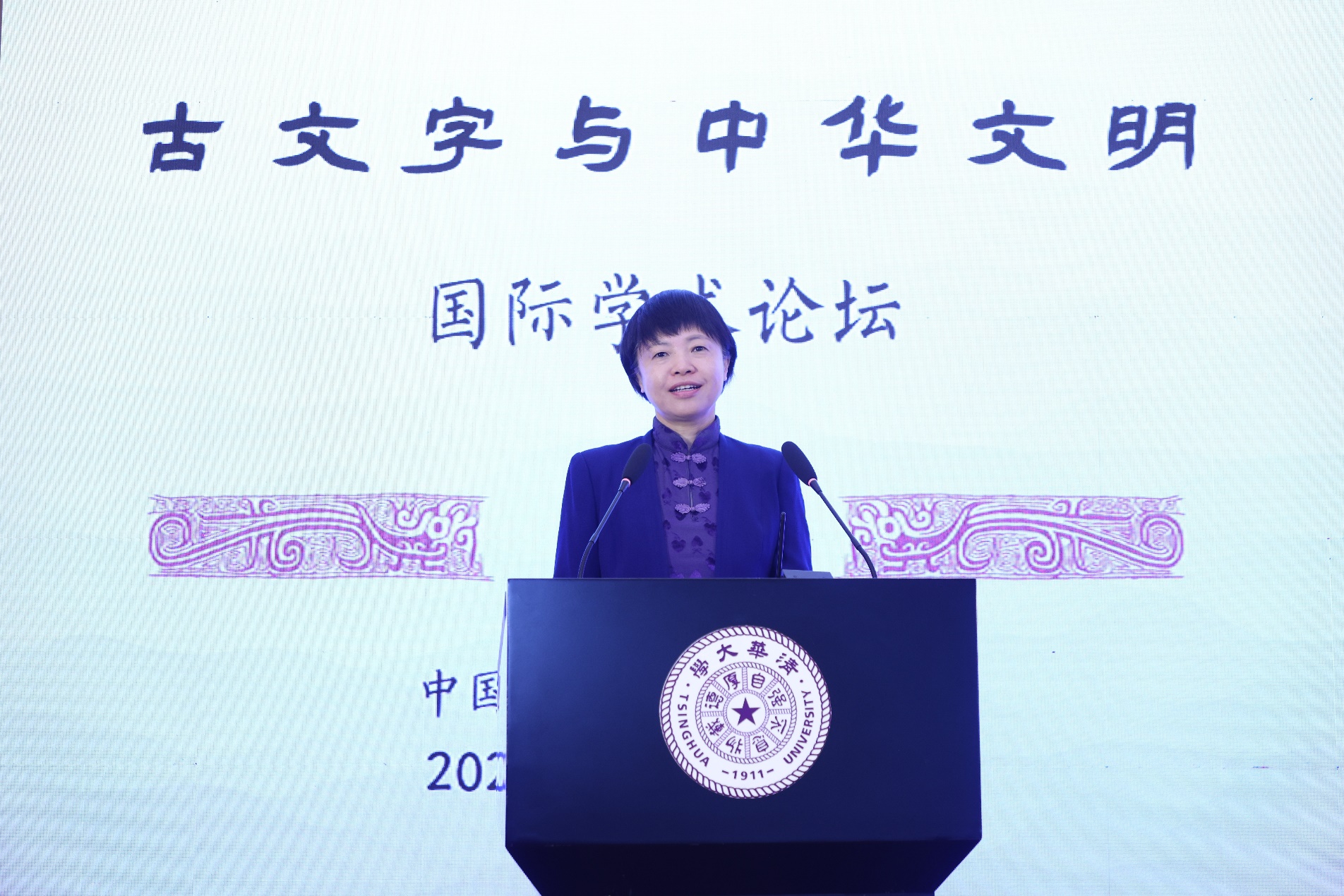 田立新表示,在习近平总书记提出共建“一带一路”倡议10周年背景下举办此次论坛意义重大、影响深远,对推动古文字与中华文明研究发展具有重要意义。习近平总书记高度重视以甲骨文为代表的中华优秀传统文化的传承发展,多次发表重要论述指出,殷墟甲骨文的重大发现在中华文明乃至人类文明发展史上具有划时代的意义。中国的汉文字非常了不起,中华民族的形成和发展离不开汉文字的维系。国家大力支持开展相关研究,2020年启动“古文字与中华文明传承发展工程”,全面系统开展甲骨文、金文、简帛文字等古文字研究,揭示古文字在中华文明乃至人类文明发展史上的重要作用,取得显著成效。要进一步深化相关领域的国际交流合作,加强古代文明比较研究,推动海外古文字资料调查、研究成果外译等,立足世界角度阐释中华文化精神的当代价值和世界意义。她倡议海内外专家学者作为融通中外的使者,携手共进,为沟通中外文化、增进理解友谊合作作出更加积极的努力,以语言文化为纽带促进文明交流互鉴。