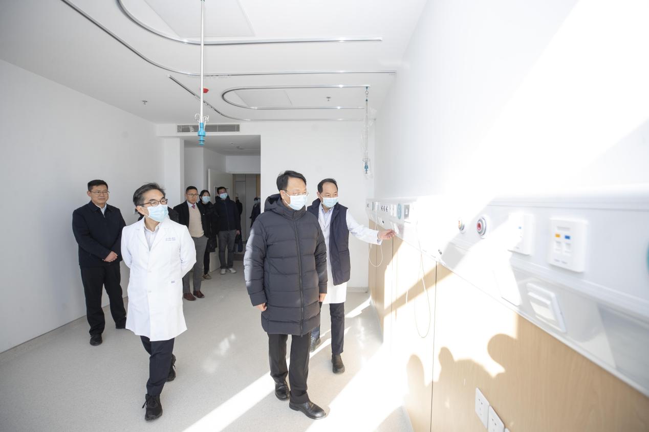 座谈会前,王希勤一行先后前往心脏外科重症监护室、放射影像科、新内科病房楼调研医疗救治工作、设备更新与新楼建设情况。