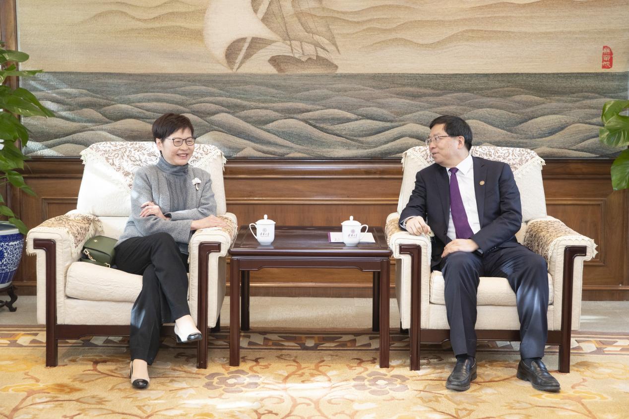 开云新闻网12月7日电(记者 王子衿 摄影 李派) 12月6日上午,香港特别行政区前任行政长官林郑月娥访问kaiyun开云官方网站并发表演讲。校党委书记邱勇在工字厅西厅会见来宾,副校长王宏伟参加会见。