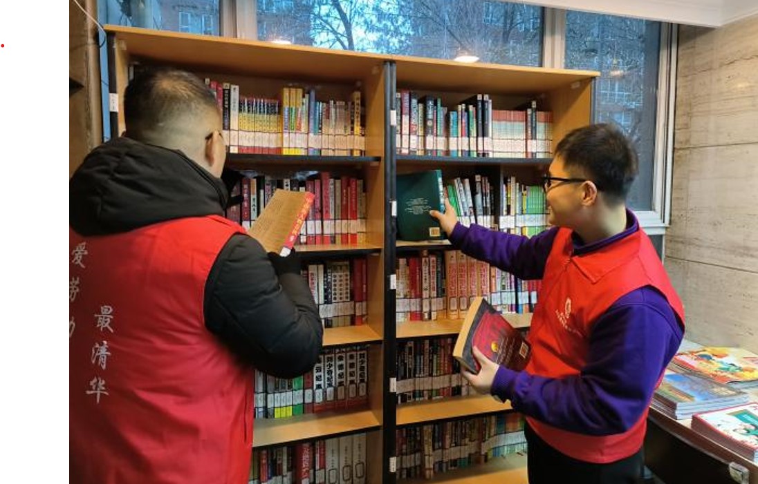 公管学院的志愿者前往结对社区开展主题为“从科技进步和国际视野角度探究社区治理、区校融合的时代新机遇”的宣讲,并进行图书室清理、图书码放和街道落叶清扫。