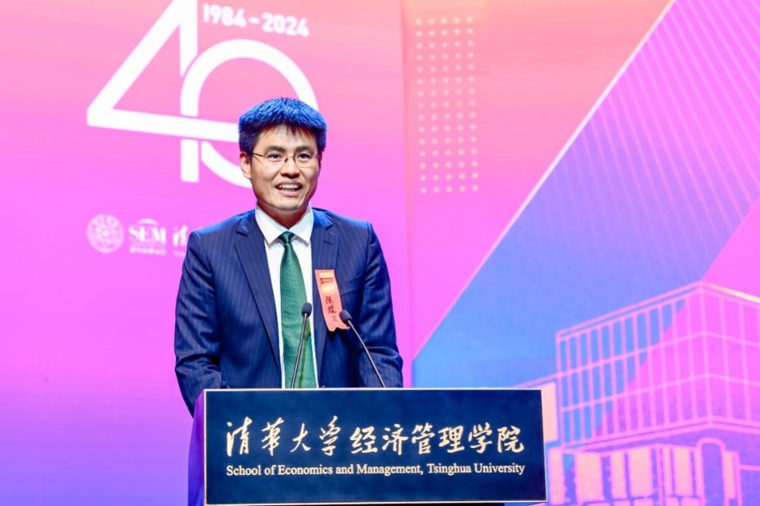 播放40周年院庆专题片《登攀》后,白重恩向出席大会的嘉宾、师生,以及心系学院发展、支持学院建设的海内外校友、同仁、社会各界朋友致以感谢。他以“致敬、传承、创新、展望”四个关键词回顾了学院历史,并向老院长朱镕基致敬,感谢他为学院发展倾注的巨大心血和提供的方向性引领,感谢他对学院价值体系的重大贡献,向学院其他前辈先贤和教职员工致敬。他表示,未来学院将坚守初心使命、勇于开拓创新,努力建设成为理论与实践之间的桥梁、不同学科之间的桥梁、科技与商业之间的桥梁以及连接中国与世界的桥梁,并以此作为重要切入点,在更高水平上实现学院的使命。