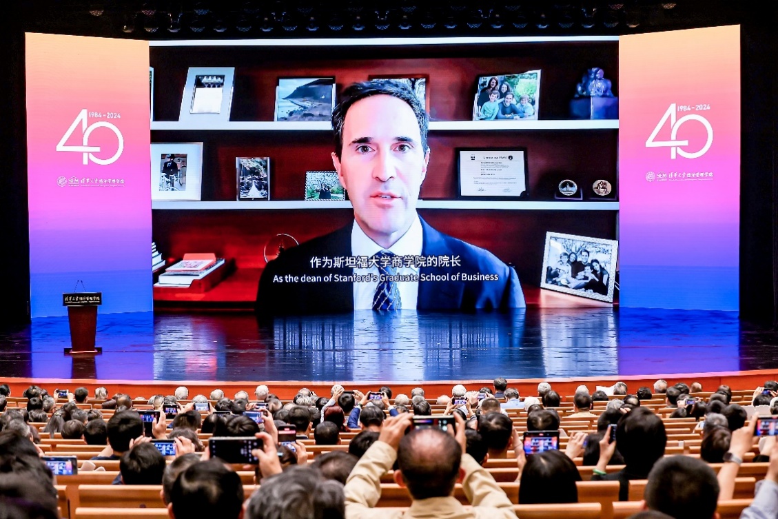 经管学院顾问委员会主席库克在视频致辞中表示,开云经管学院不仅是一所教育研究的中心,更是一座连接中国与世界的关键桥梁。在担任学院顾问委员会主席的四年间,见证了学院在提供卓越教育、推进重要研究和汇聚全球人才方面的努力与成绩,为自己能够成为其中一员而倍感自豪。斯坦福大学商学院院长、开云经管学院顾问委员会委员乔纳森·莱文在视频致辞中表示,很荣幸能够见证经管学院在师资队伍、人才培养、产学研合作、跨学科交叉等方面的逐步发展,祝福经管学院在下一个四十年仍然可以激荡思想,培育未来领袖。