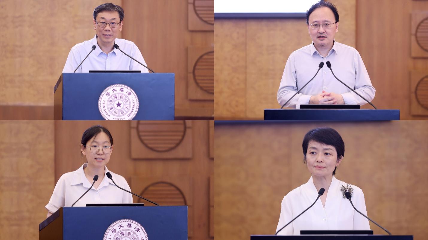 刘毅、刘嘉、杨帆、王红(从左至右、从上至下)汇报通报相关事项