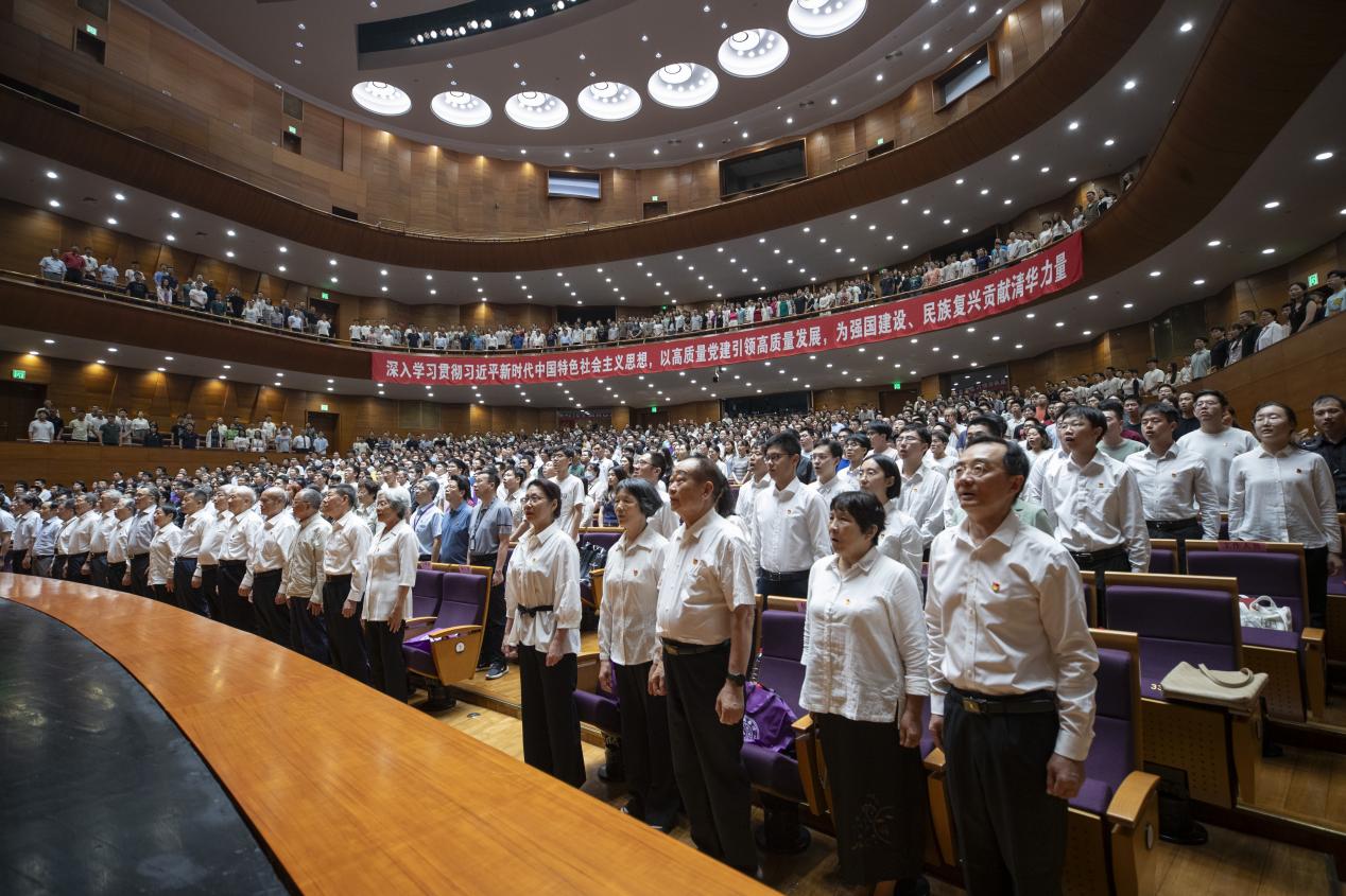 学校老领导,校党委委员、纪委委员,党委各职能部门负责人,学校第十五次党代会代表,各单位党员干部、党委委员、党支部书记、学生思想政治辅导员和研究生德育工作助理、师生党员代表,离退休教职工党员代表,新党员代表等近1500人现场参会。全校广大师生党员通过荷塘雨课堂在线参会。