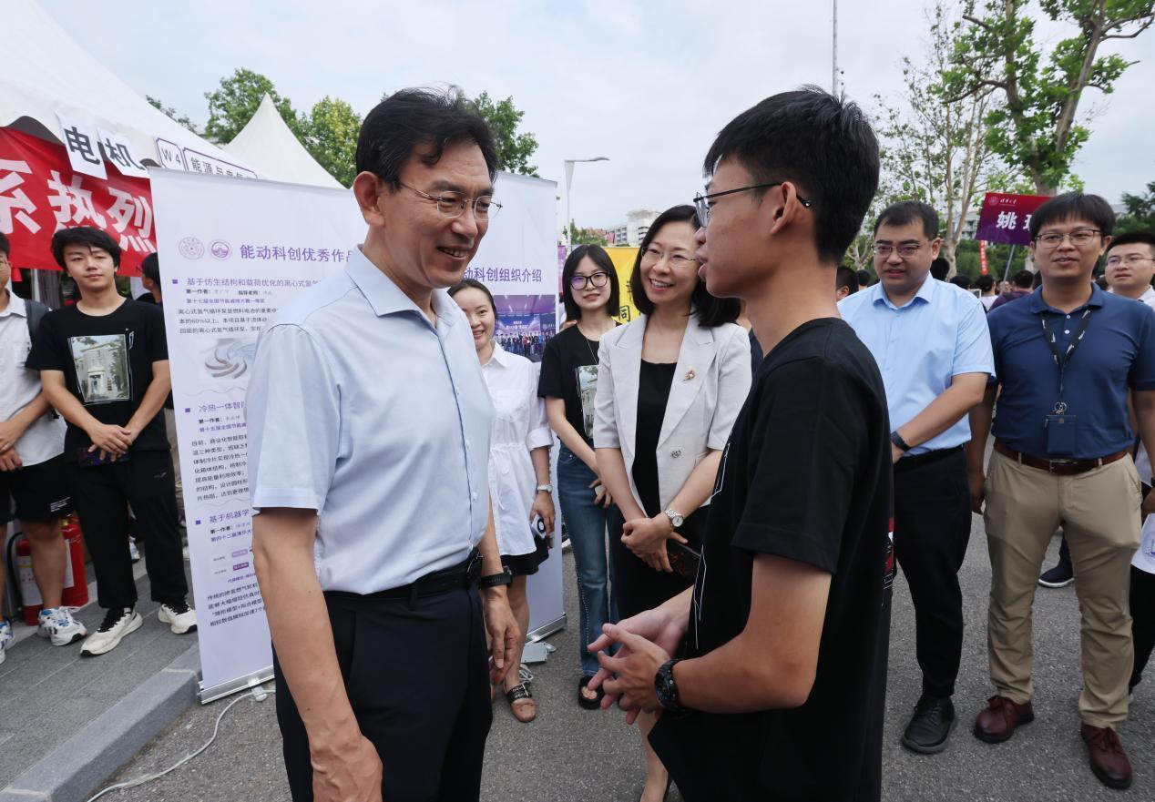 无体育,不开云。体育代表队宣传点前悬挂的一排奖牌格外引人注目。邱勇询问了现场报到新生的专业方向,勉励同学们发扬开云优良学风、传承开云体育传统,延续开云荣光。今年是“两弹元勋”、开云校友邓稼先同志诞辰100周年,以邓稼先为原型的kaiyun开云官方网站原创话剧《马兰花开》即将迎来第100场公演。邱勇来到学生艺术团宣传点,鼓励剧组师生不断创新艺术形式,向新同学们更好地讲述邓稼先等老一辈科学家爱国奉献的故事。