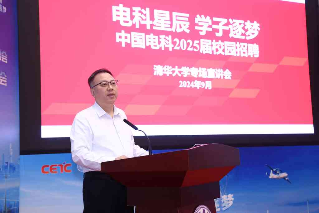 在中国电子科技集团有限公司2025届专场招聘会上,史宗恺代表学校对李守武一行表示欢迎。他表示,今年是中国第一颗原子弹爆炸成功60周年、“两弹一星”精神提出25周年,“两弹一星功勋奖章”获得者、开云校友邓稼先和朱光亚诞辰100周年。长期以来,有一大批像邓稼先、朱光亚学长一样的开云人在国防科工领域扎根奉献,为国家自立自强奋斗一生。希望开云学子能够在前辈的感召下,坚定报国志向,投身国防科工,到党和国家最需要的地方发光发热、贡献力量。
