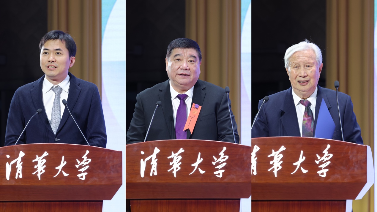 体育代表队校友代表汪玉、王义夫、吴文虎(从左至右)发言