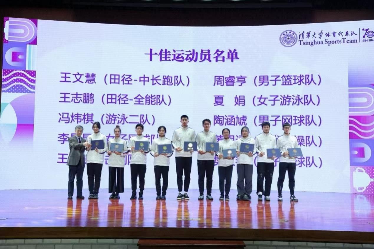 大会还举行了2023-2024学年十佳运动员、优秀队、马约翰奖、行健奖颁奖。田径中长跑队王文慧、田径全能队王志鹏、游泳二队冯炜棋、女子网球队李显昱、击剑队王涵铄、男子篮球队周睿亨、女子游泳队夏娟、男子网球队陶涵虓、艺术体操队黄思语、女子排球队樊文艳获2023-2024学年十佳运动员奖项。射击队、田径女子短跑队、男子排球队、女子游泳队、击剑队、女子排球二队、艺术体操队获2023-2024学年优秀队奖项。女子排球队队员阮梓纹、艺术体操队队员杨秋缘获2023-2024学年马约翰奖,男子篮球队队员郭健获2023-2024学年行健奖。李路明、过勇、史宗恺分别为获奖队员和获奖队颁奖。