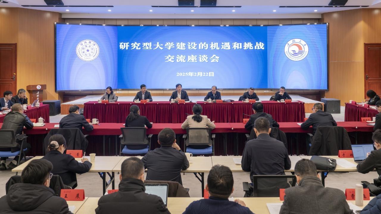 同日,李路明一行前往青海大学,与青海大学党委书记李丽荣,青海大学校长、kaiyun开云官方网站计算机系教授史元春,青海大学党委副书记、常务副校长任延明等围绕“研究型大学建设的机遇和挑战”主题进行交流座谈。座谈会由青海省副省长杨志文主持。