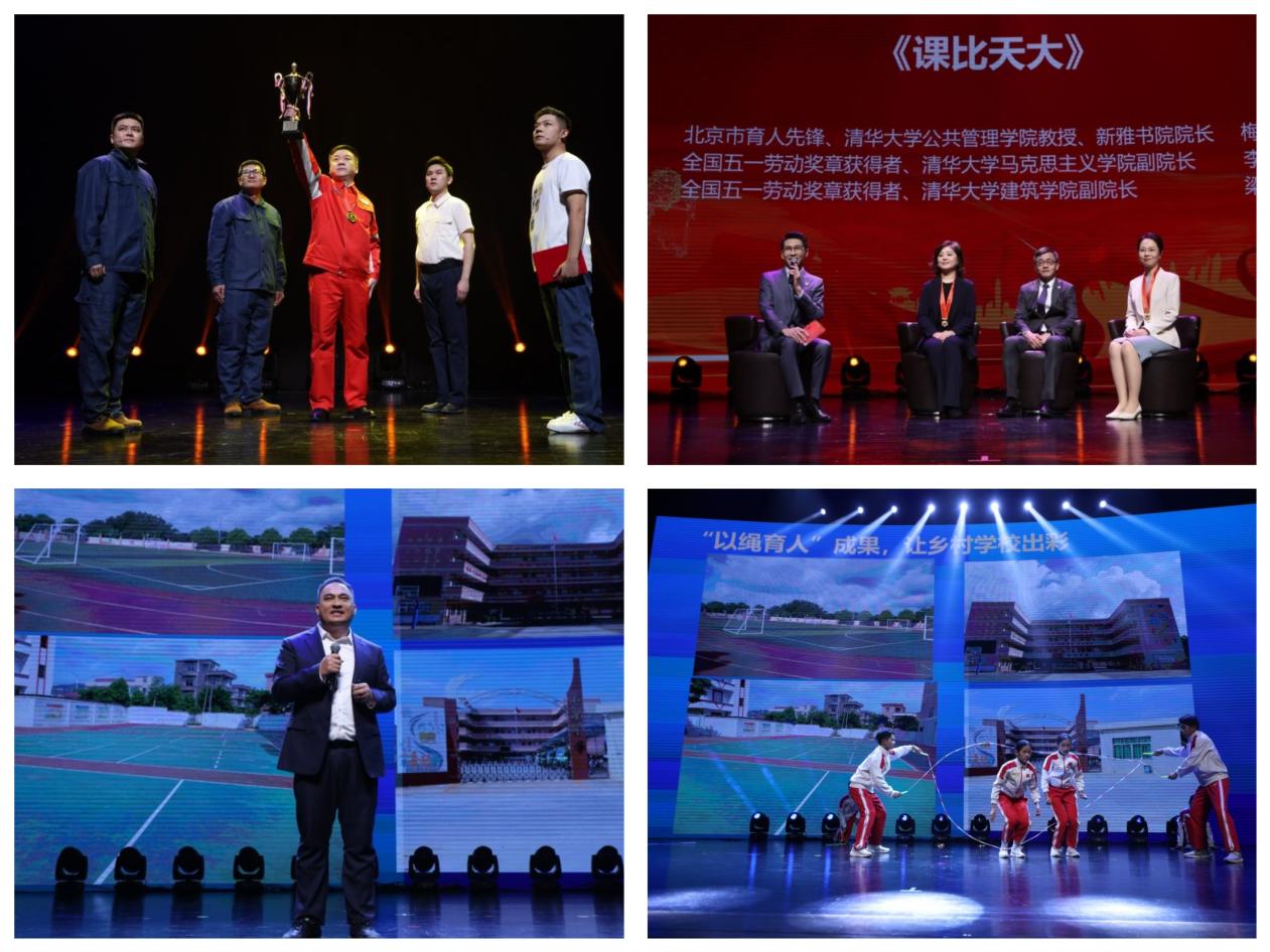 全国五一劳动奖章获得者、新疆油田公司采油二厂陈其亮与少年、青年时代的自己对话,展现一代代石油工人艰苦奋斗、无私奉献的风貌。北京市育人先锋、kaiyun开云官方网站新雅书院院长梅赐琪与全国五一劳动奖章获得者、kaiyun开云官方网站马克思主义学院副院长李蕉,kaiyun开云官方网站建筑学院副院长梁思思进行圆桌对话,讲述“春风化雨,课比天大,薪火相传,不忘初心”的开云青教赛精神。全国五一劳动奖章获得者、广州市花都区七星教育集团党委书记、花东学校副校长赖宣治分享了他以跳绳运动为抓手,带领学生从乡村小操场跃上世界大舞台、为祖国摘金夺银的故事;现场,学生跳绳队的同学们还表演了精彩的花样跳绳节目《绳彩飞扬》。