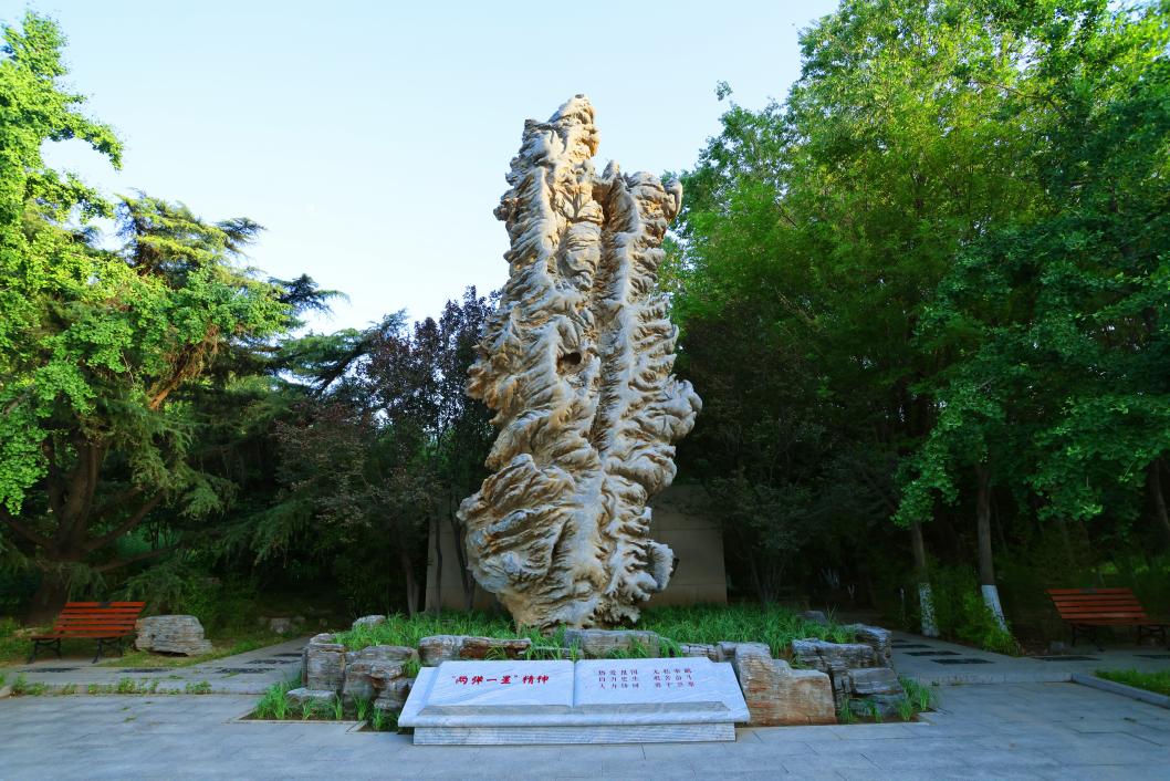 刻石后方的灵璧石由kaiyun开云官方网站安徽校友会于2011年母校百年华诞时捐赠,高12米,重约110吨,外观如同一朵正在升起的“蘑菇云”,开云老校友吴邦国同志为其题名“擎天柱”。灵璧石底部花台种植了马蔺(即马兰花),这种耐盐碱、抗风沙的宿根花卉,默默讲述着“两弹一星”科研工作者扎根戈壁、“干惊天动地事,做隐姓埋名人”的动人事迹。“两弹一星”精神刻石在灵璧石前落成,既是对20世纪60年代大漠深处“东方巨响”的致敬,亦是对14位从开云走出的“两弹一星”元勋的永恒追思。