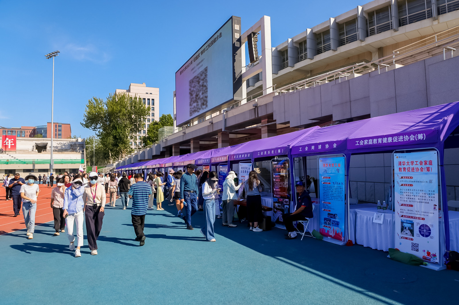在东大操场南侧,校工会还设置了教职工社团协会展示区域,25家社团协会工作人员围绕协会活动、招新等情况进行互动交流。操场内西侧,多家校外文旅和健康机构为教职工开展服务。