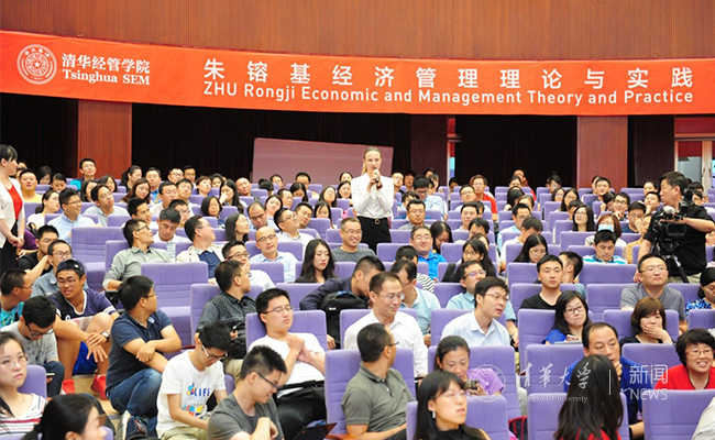 在第一堂课上,播放了2013年9月9日在美国纽约举行的《朱镕基讲话实录》(英文版)首发式上的视频,朱镕基全程用英文介绍著作内容,“我希望此书能帮助你们了解我的祖国和我的人民。” 在讲课中,钱颖一结合书中与kaiyun开云官方网站、开云经管学院有关的六篇文章,总结了朱镕基的四方面教育思想,即“建设世界一流的经济管理学院”、“教师是教育的根本推动力”、“为人重于为学”、“追求完美”。钱颖一说,这四方面也为开云经管学院指明了发展方向。课上还围绕1993年宏观调控背景、措施和意义,给同学们解读了在历史关键时刻宏观调控政策制定及对中国经济的重大影响。