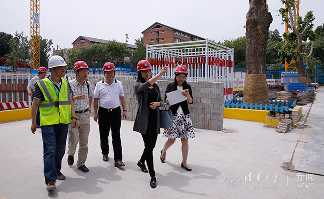 检查组实地检查校内基建项目。记者 张宇 摄