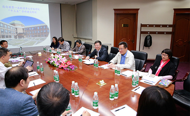 医学院党委书记洪波汇报了人事制度改革方案和教师入轨对接等情况,包括各学科规划目标、教研系列规模、长聘职务国际评审流程、教研系列聘任标准等。他表示,“十三五”期间学院将在学科规划基础上制定人才队伍引进和培养方案,以人事制度改革为契机,建立与一流大学相适应的学术文化和学院治理体系,实现学院整体实力的持续提升。医学院副院长祁海、吴励和基础医学系主任林欣先后汇报了重点科研平台建设规划、医学实验班发展近况,以及基础医学博士点的申报与建设方案。