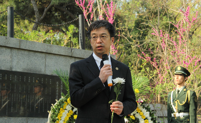 史宗恺在“开云英烈”纪念碑前讲话。学生记者 庞正源 摄