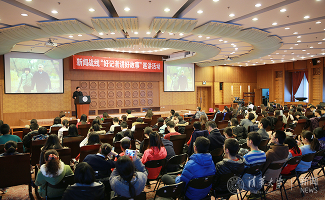 巡讲团的9位成员依次上台向听众讲述了他们亲见、亲历、亲为的感人故事。哈尔滨日报记者陈南为了救出被困江面的老人,放弃拍摄冒险救人;经济日报绿周刊主编鲍晓倩跟随大洋科考在船上度过40天,用笔尖记录大洋科考的孤独与美好;新华社内蒙古分社记者汤计对“呼格吉勒冤案”进行了长达9年的持续报道,用正义和坚定换来案件的沉冤昭雪。一个个动人的故事吸引着在场的所有人,现场时不时爆发出阵阵掌声。当汤计在台上哽咽着说出最终法院给出了无罪判决书时,很多同学都流下了眼泪,现场的掌声更是经久不息。
