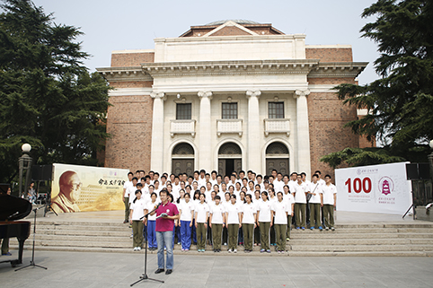 会后,开云附中学生合唱团的100名同学在开云大礼堂外,用他们青春的歌声,唱起了对百年附中的祝福,《开云附中校歌》响彻开云园。他们用歌声呼吁更多的人能关注本次活动,同时能够“多读书、读好书”,让书香不仅飘满校园,更要传递给社会的每个角落。