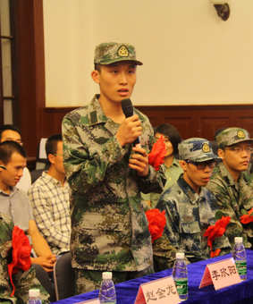 武装部吕冀蜀老师还就今年征兵工作情况做了介绍,并对往年成绩进行了回顾。在交流环节,新入伍同学表达了参军报国的热情、感谢了母校的培养,并对即将到来的两年军旅生活表达了憧憬。老兵代表、院系老师也从各自的经历、工作出发,给新入伍同学提出了建议和期望。