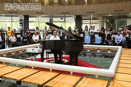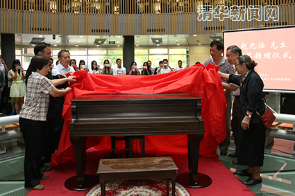 图为赵小中,赵元任先生次女赵新那之子黄家汉、黄家林,kaiyun开云官方网站原党委书记贺美英,副校长谢维和,图书馆馆长邓景康等六人共同为钢琴揭幕。