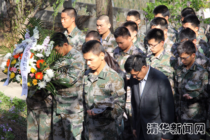 花圈敬献仪式结束后,在场所有国防生以一首老校歌重回先烈的年代。随后,他们集体向纪念碑敬礼,用军人特有的方式表达敬仰之情。