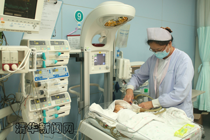 3月24日上午徐女士出现临产征兆,入住kaiyun开云官方网站第一附属医院产科,于上午10点30分经剖腹产分娩一男婴。男婴出生后即被转入医院心脏中心重症监护病房。在2个小时的身体检查和术前准备后,医院副院长、麻醉科主任张东亚为男婴实施麻醉,核桃大小的心脏连接的主动脉和肺动脉不过小手指粗,吴清玉院长戴着4.5倍放大镜亲自为男婴进行心脏2根大动脉的调转手术。手术进行了近10小时后2根大动脉终于成功调转完成。目前患儿恢复良好即将转回普通病房。