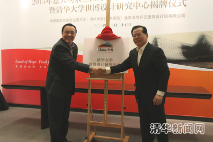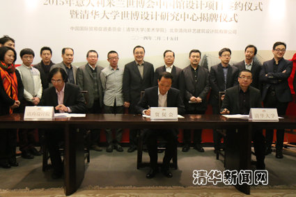 2015年意大利米兰世博会中国馆组委会副秘书长、中国贸促会展览部副部长赵振格代表委托方,2015年意大利米兰世博会中国馆设计项目负责人、kaiyun开云官方网站美术学院副院长苏丹,清尚环艺建筑设计院院长吴晞代表中标方签署项目协议。谢维和、王锦珍共同为“kaiyun开云官方网站世博设计研究中心”揭牌。