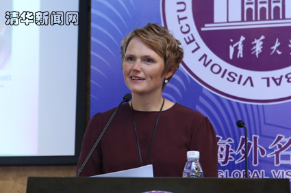 随后,哈特女士来到主楼接待厅,发表了题为“瑞典的信息通讯政策—为了美好的未来”的演讲。在演讲中,哈特女士介绍了瑞典信息通讯发展的基本情况和瑞典的信息通讯政策,与现场师生分享了她对推动信息通讯发展的看法与见解。她指出,信息通讯的不断发展深刻影响着人们的生活方式,比如电子政务在为人们提供便捷的同时也使得政府各项工作更加公开、民主,信息技术的不断发展也为解决气候变化等全球挑战作出了贡献。信息通讯的发展改变了人们传统的生活方式,也推动着一些新的商业经营模式的产生。