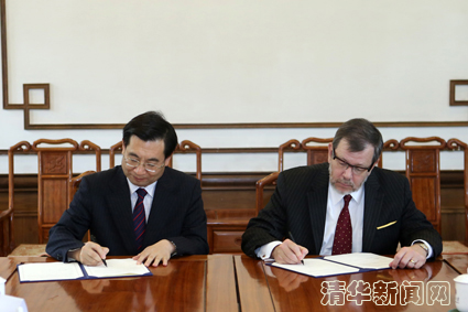 图为胡和平与卡勒代表双方签署协议。记者 智斐 摄