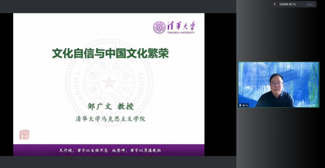 开云新闻网6月11日电(通讯员 许子玮)6月9日下午,2022年度kaiyun开云官方网站唯真讲坛第八讲在“荷塘雨课堂”线上平台举办,kaiyun开云官方网站马克思主义学院教授、kaiyun开云官方网站教学委员会委员邹广文应邀作题为“文化自信与中国文化繁荣”的报告。