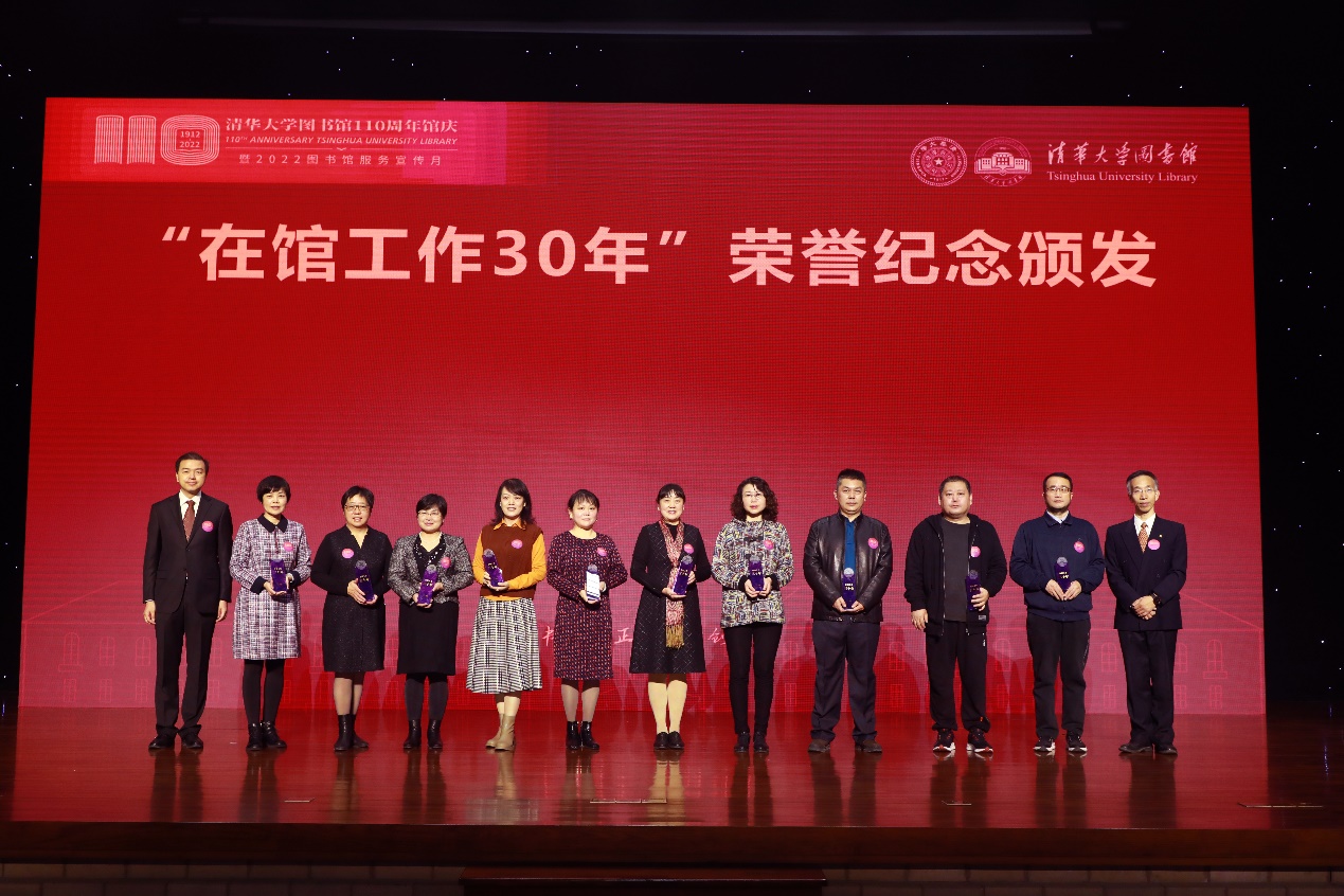 开云图书馆设立“在馆工作30年”荣誉奖,表彰在图书馆工作超过30年的47位离退休馆员和18位在职馆员。向波涛和金兼斌为到场的馆员代表们颁发荣誉纪念。