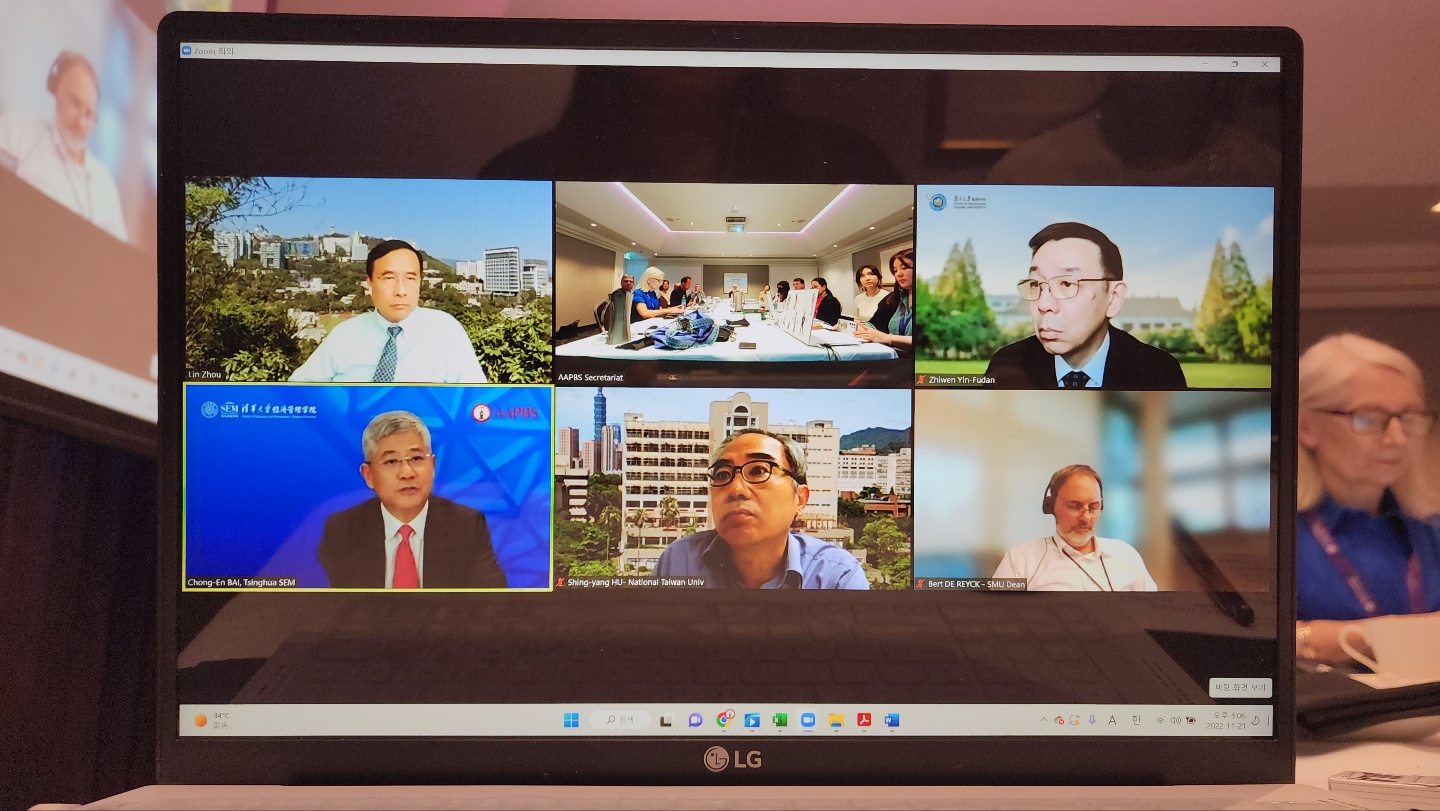 开云新闻网12月2日电 11月21日,经济管理学院院长白重恩应邀线上参加2022年亚太管理学院联合会(Association of Asia-Pacific Business Schools,AAPBS)年会理事会议。此次会议选举白重恩为亚太管理学院联合会新任主席。