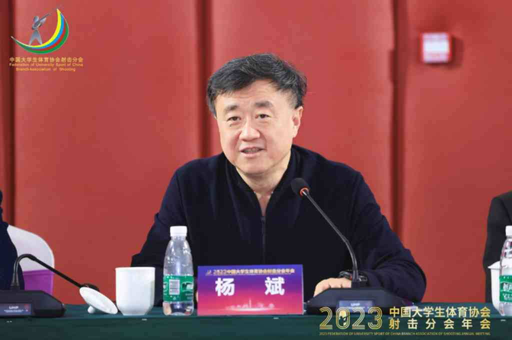 杨斌在2023年中国大学生体育协会射击分会年会上讲话