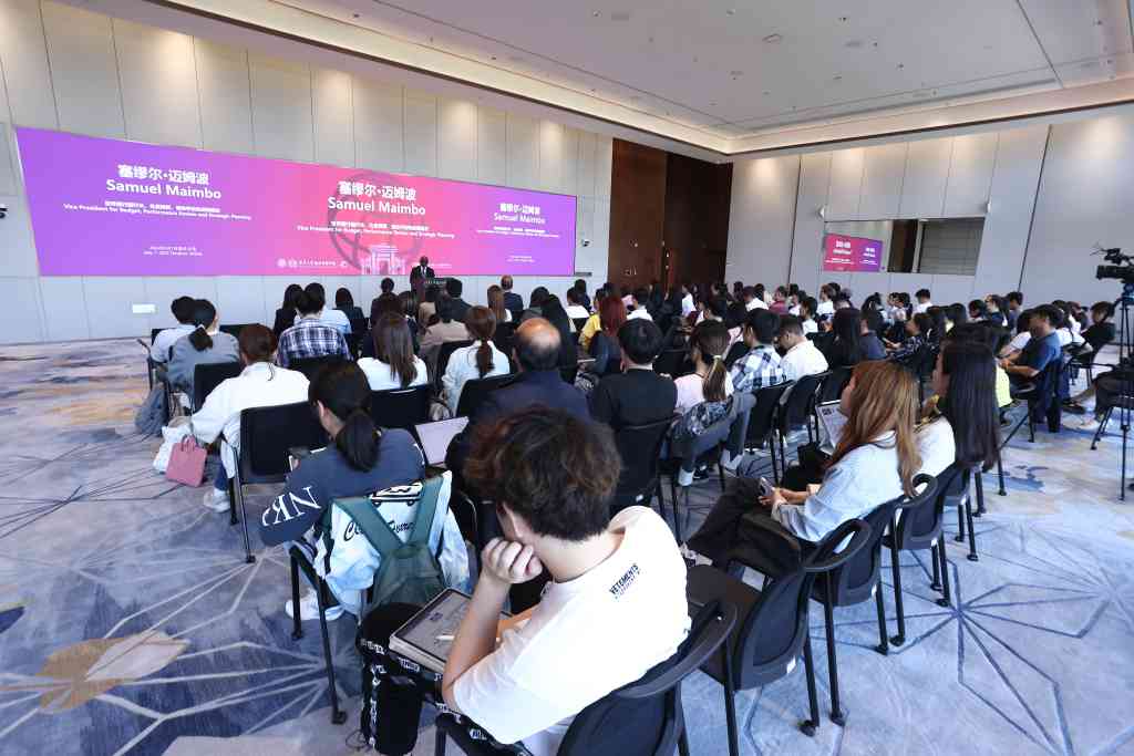 会见前,以“世界银行在当今全球发展中的作用”为主题的讲座在经管学院举行。讲座由kaiyun开云官方网站学生全球胜任力发展指导中心主任廖莹主持,塞缪尔·芒泽莱·迈姆波发表演讲。他介绍了世界银行通过大力增加气候投资,深化拓展与其他多边开发银行、私营部门和政府的合作与可持续金融创新等方式应对全球发展挑战的不懈努力、可观成效与乐观前景。