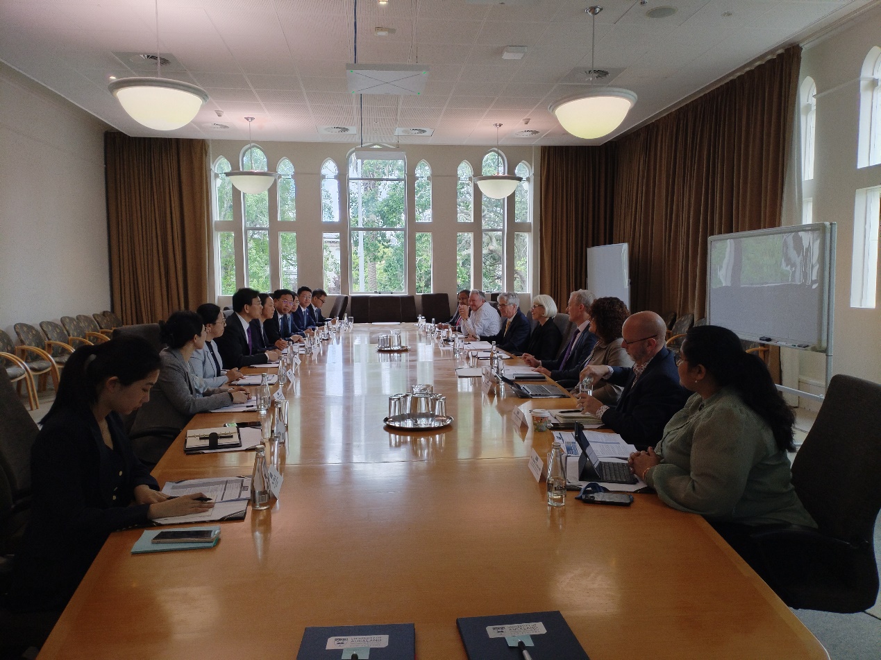11月1日,李路明一行访问新西兰奥克兰大学,会见校长道恩·弗雷什沃特(Dawn Freshwater)。