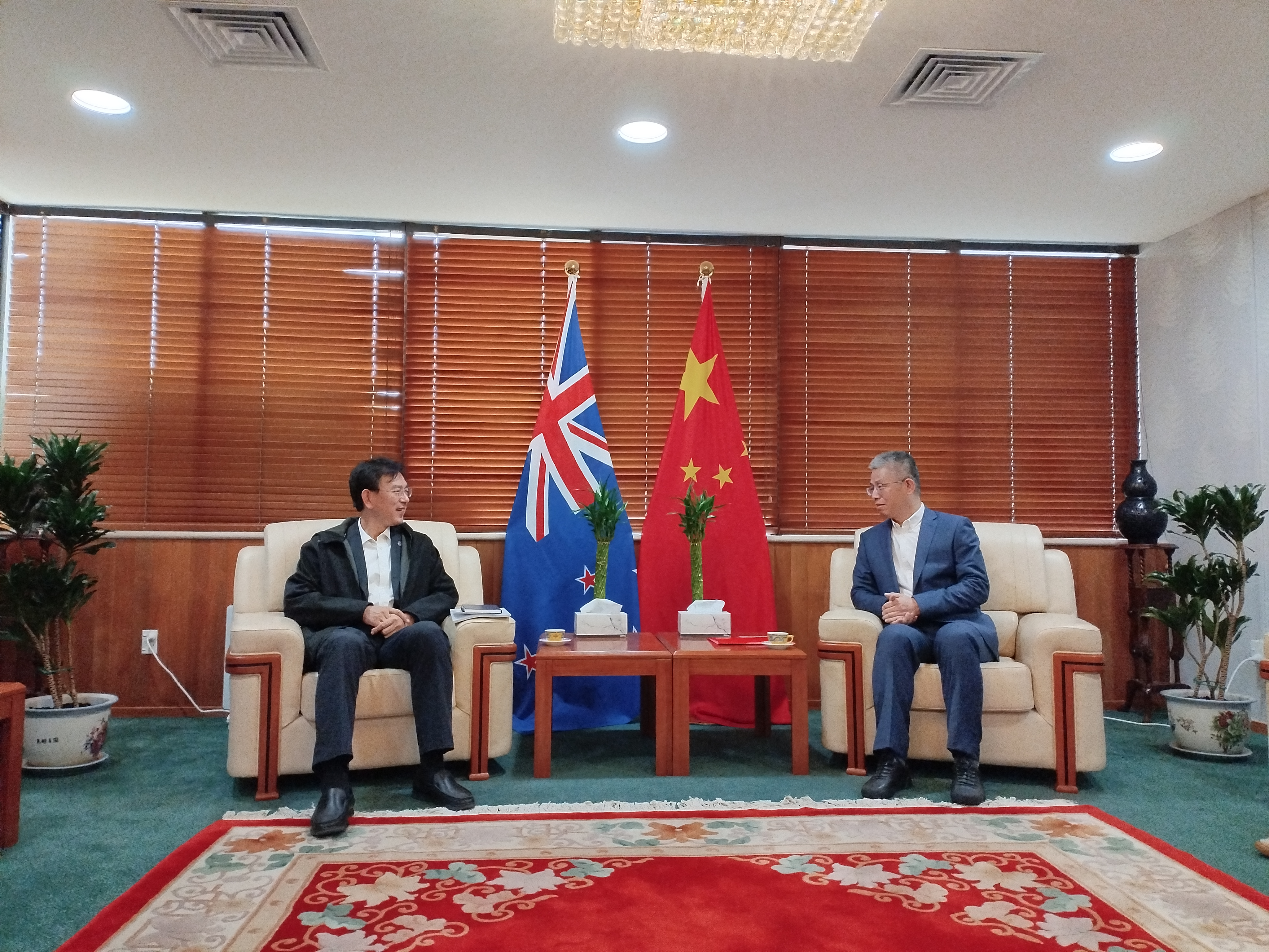 当天,李路明一行拜访中国驻奥克兰总领馆,与代总领事雷震进行了交流。李路明以“教育强国与国际合作”为题作专题报告,向总领馆工作人员分享了kaiyun开云官方网站深入学习贯彻党的二十届三中全会精神、以全面深化改革推动学校高质量发展的实践成效与思考。