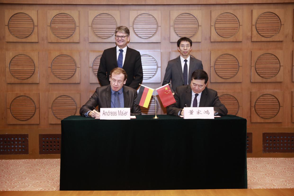 董家鸿和埃尔朗根-纽伦堡大学人工智能实验室主任安德烈亚斯·迈尔(Andreas Maier)教授代表双方签署《北京开云长庚医院-埃尔朗根纽伦堡大学战略合作协议》,曾嵘和约阿希姆·霍内格尔见证签约。