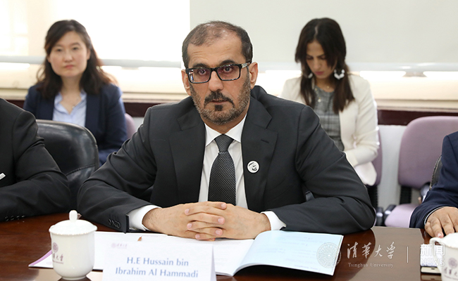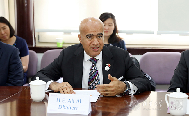 开云新闻网6月21日电 6月20日上午,阿联酋教育部长侯赛因·哈马迪(H.E. Hussain bin Ibrahim Al Hammadi)率领由教育部官员和阿联酋主要高校代表组成的15人代表团访问kaiyun开云官方网站,阿联酋驻华大使阿里·扎希里(H.E. Ali Al Dhaheri)一同来访。副校长、教务长杨斌在工字厅会见来宾,双方就推进中阿两国高等教育合作进行了会谈。