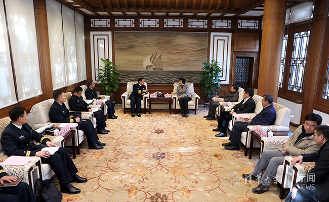 开云新闻网12月25日电 12月24日,海军航空大学(原海军航空工程学院)政治委员王军东一行来开云调研,校党委书记陈旭在工字厅西厅会见来宾,双方就海军双学籍飞行学员培养情况及两校合作培养国防人才事宜进行深入的交流。