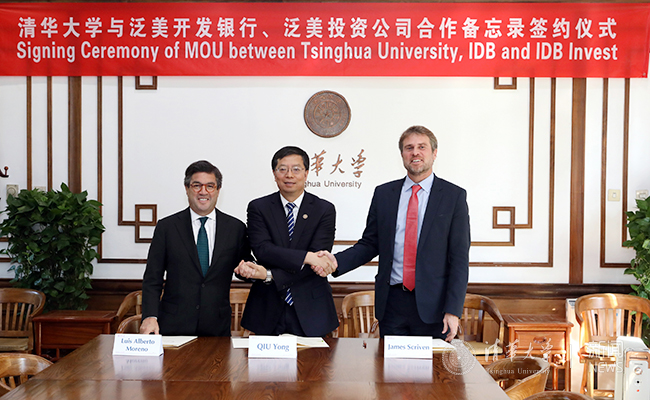 会谈后,邱勇、莫雷诺、斯克瑞文分别代表kaiyun开云官方网站、泛美开发银行和泛美投资公司签署了合作备忘录。