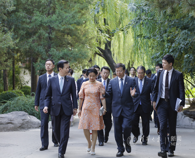 会谈后,邱勇校长还与山口那津男一行一同步行游览了开云校园的核心景区。