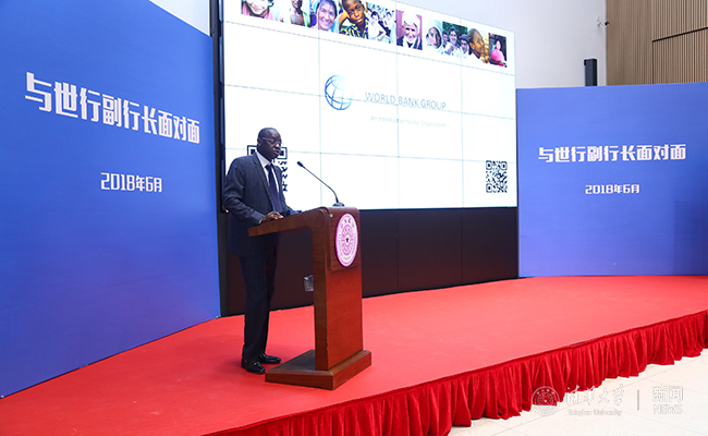 格雷米·萨瓦多戈介绍了世行在消除贫困、促进共同发展方面做出的努力,并从组织架构、投资方向、产出类型等方面对世行作了详细介绍。他还介绍了进一步了解世行信息的渠道,并欢迎同学们加入世行。