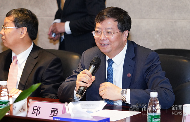 仪式前,邱勇与傅育宁进行会面交流。双方就进一步加强产学研合作交换了意见。