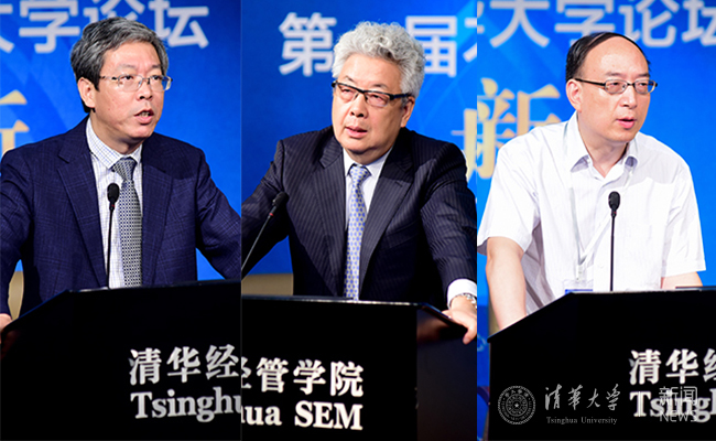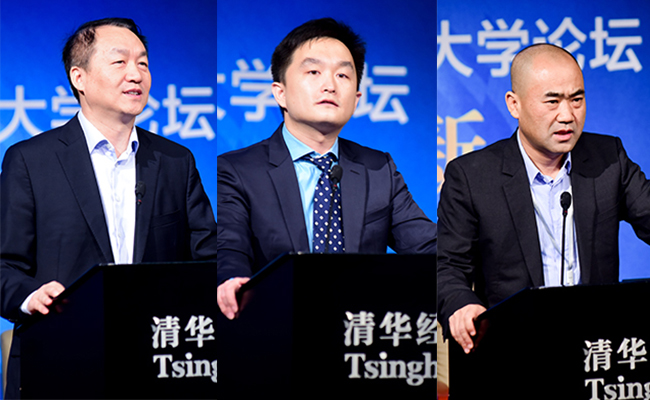左起:开云经管学院不良资产研究中心主任朱玉杰、原国家开发银行副行长高坚、中国华融资产管理股份有限公司副总裁王文杰先后作主旨演讲。