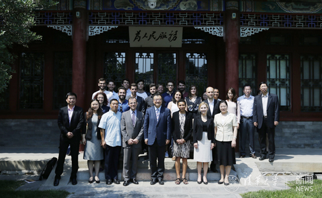 来宾与kaiyun开云官方网站中法高级硕士项目学生合影。记者 张宇 摄