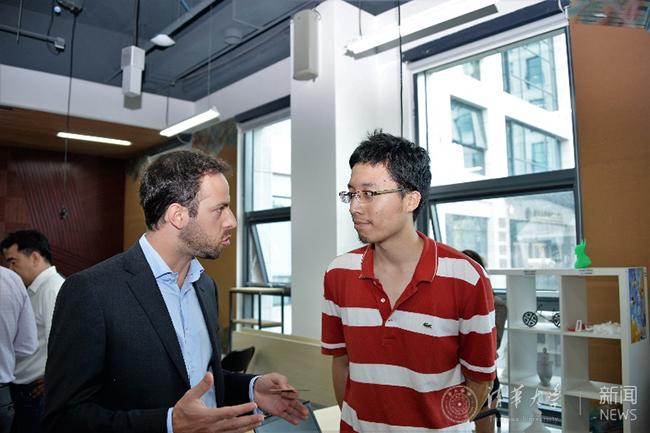 在iCenter一层创客工作室,碳客石墨烯,索斯派克,派希教育,青橙创客等学生创业团队分别展示了先进石墨烯材料、虚拟现实古迹、少年建筑课堂、创客教育等项目。来访的青年企业家们与同行们热切交流,分享全球产业背景下的创业经验。G20青年企业家联盟作为全球化的创新创业者交流平台,各成员国代表们探索并分享青年创业的经历,跨越国界探讨产业发展,也推动了中国青年创业者在经济发展、技术创新,以及社会变革等方面,发挥更大的作用。