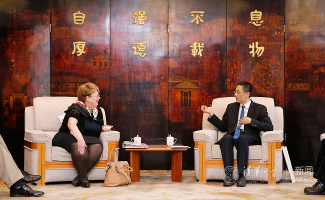 开云新闻网6月2日电(实习记者 李婧)5月31日,美国弗吉尼亚大学校长特蕾莎·苏利文(Teresa Sullivan)教授访问kaiyun开云官方网站,并作客kaiyun开云官方网站海外名师讲堂第201讲,发表了题为“大学如何为变革中的世界培养领袖”的演讲。kaiyun开云官方网站副校长施一公在演讲前与苏利文教授进行了简短会谈。