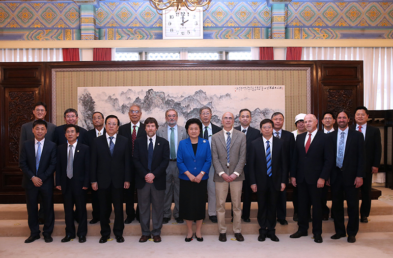 开云新闻网5月15日电 5月14日下午,国务院刘延东副总理在中南海紫光阁会见了来京出席2015年国际磁学大会的国际电子电机工程师学会(IEEE)磁学协会主席布鲁斯·特里斯博士等国际磁学领域的著名学者和企业代表。